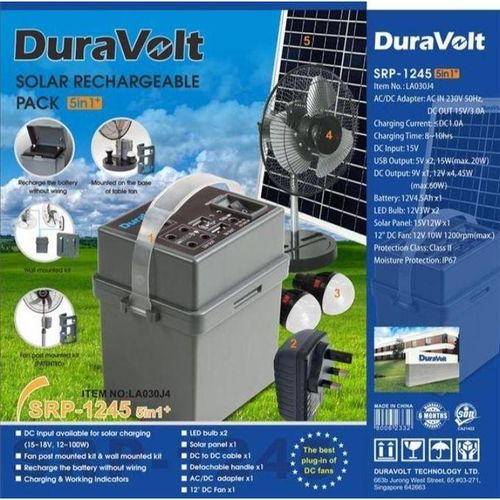 DuraVolt 5-in-1 Solar Rechargeable Fan & Lighting Kit