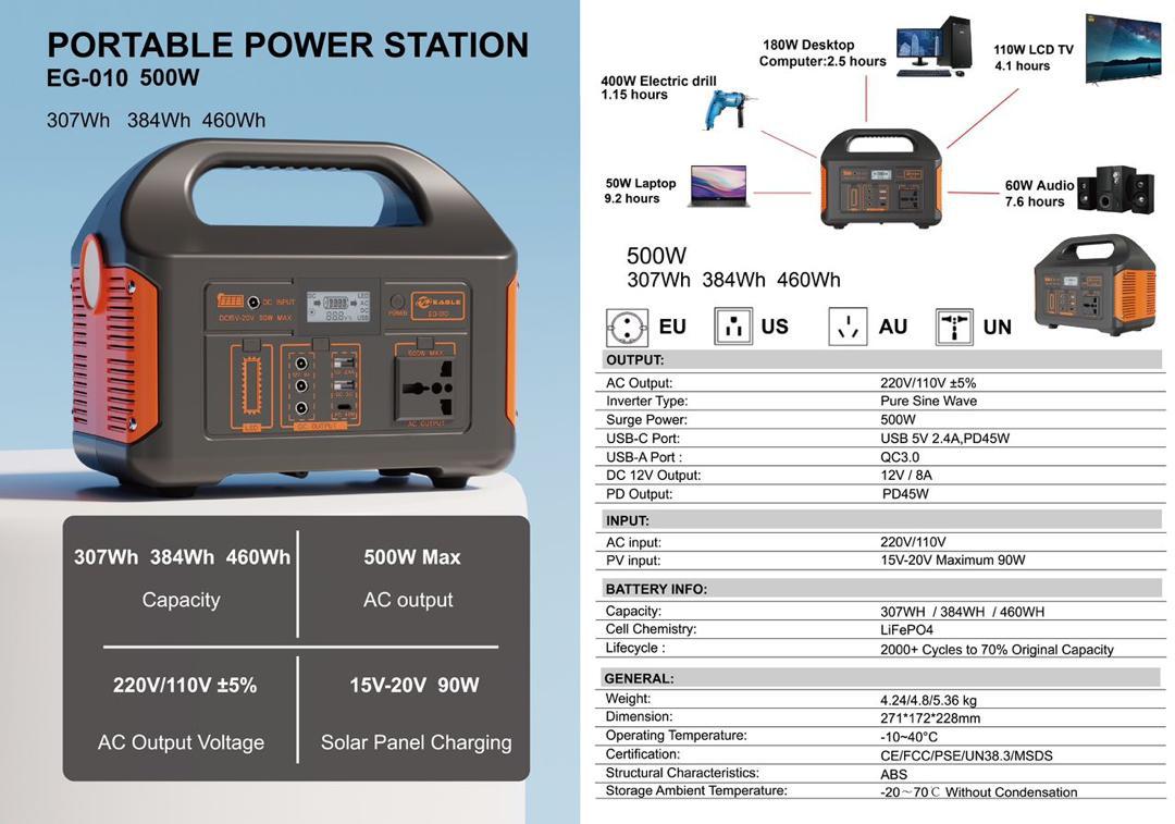 EG-010 500W Portable Power Station with 150W Solar Panel