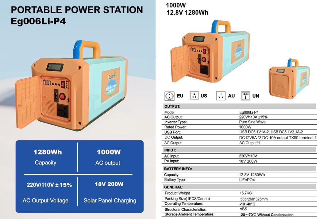 Eg006Li-P4 1000W Solar Generator with 300w solar panel