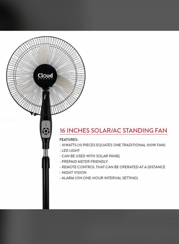 Stay cool in the Lagos heat without worrying about your electricity bill! The Cloud Energy 16-inch Solar/AC standing Fan is a revolutionary cooling solution designed for the smart Nigerian home. With its incredibly low power consumption and versatile AC/DC capabilities, this is the fan that lets you enjoy a powerful breeze all day and night without “chopping” your prepaid units or draining your inverter battery.