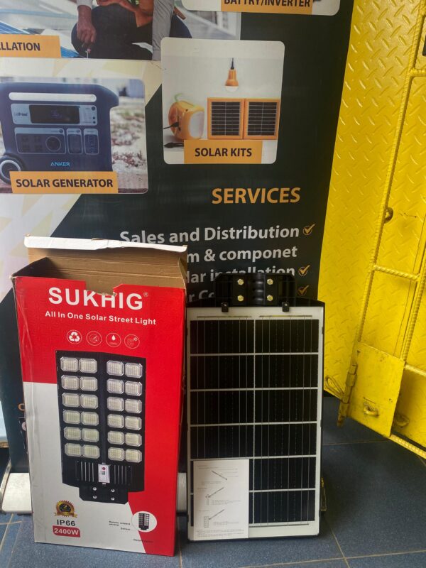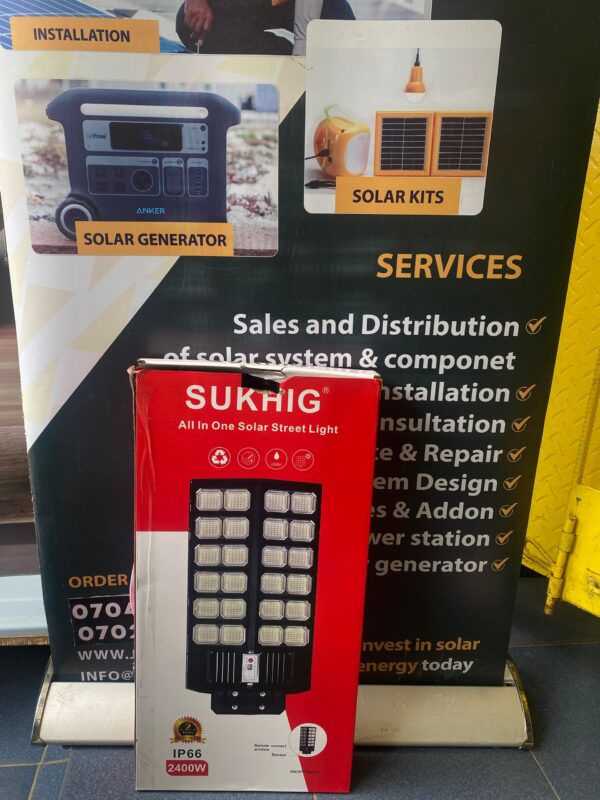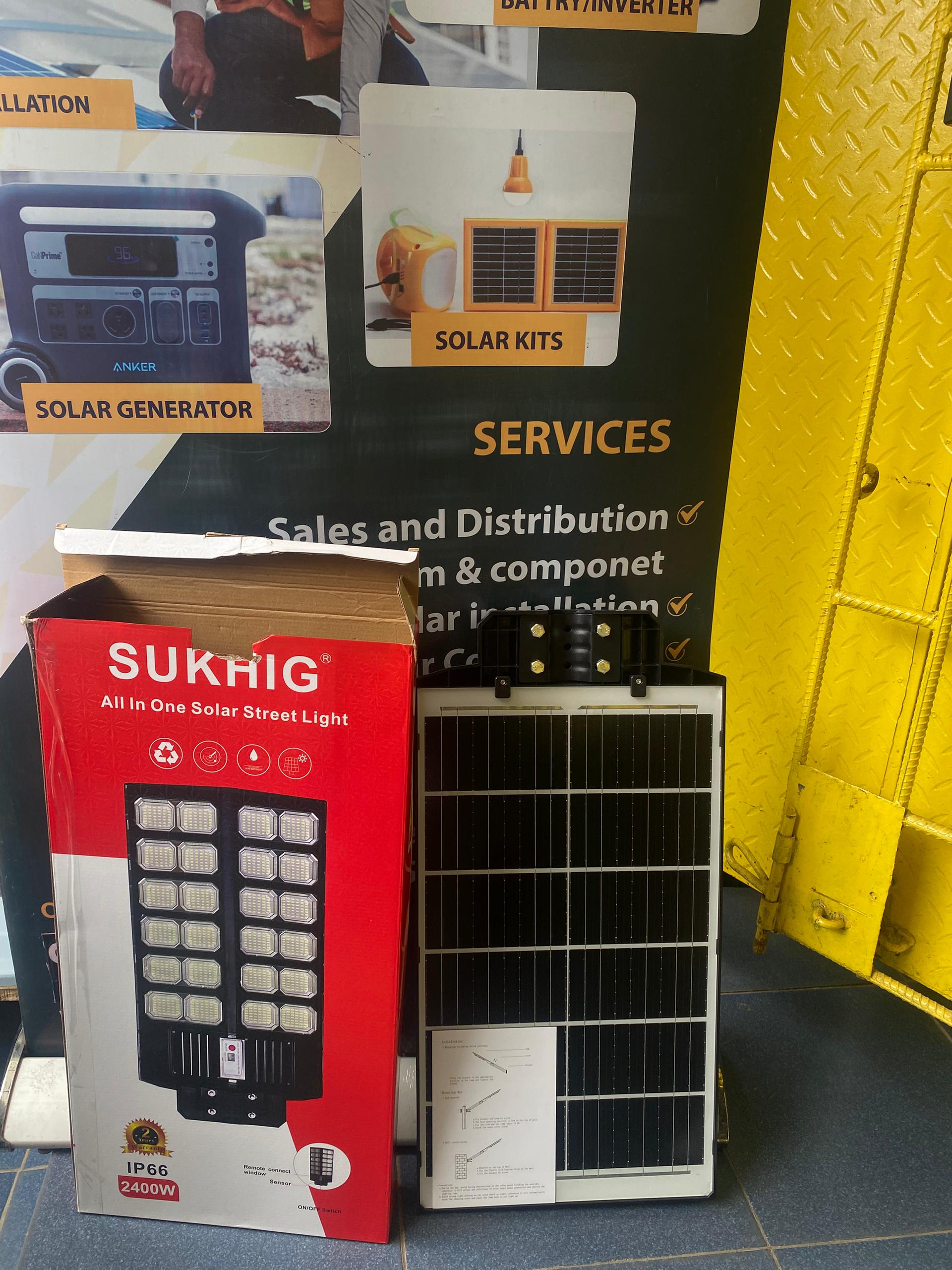 - 1 x Sukhig 2400W All-in-One Solar Area Light Fixture