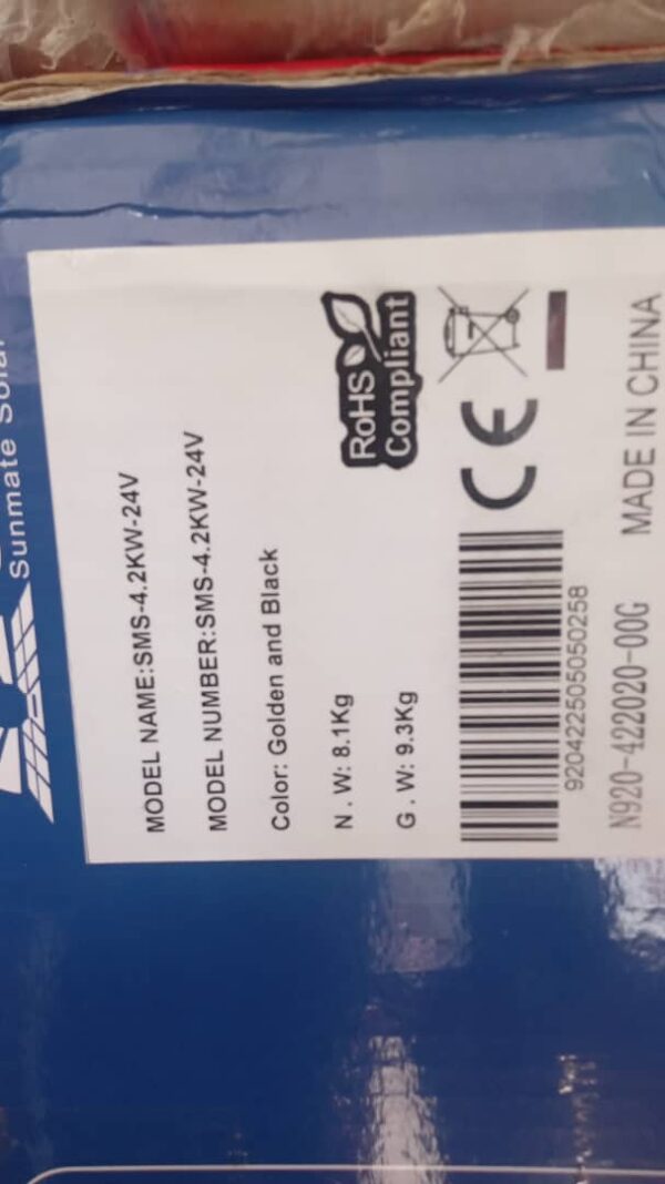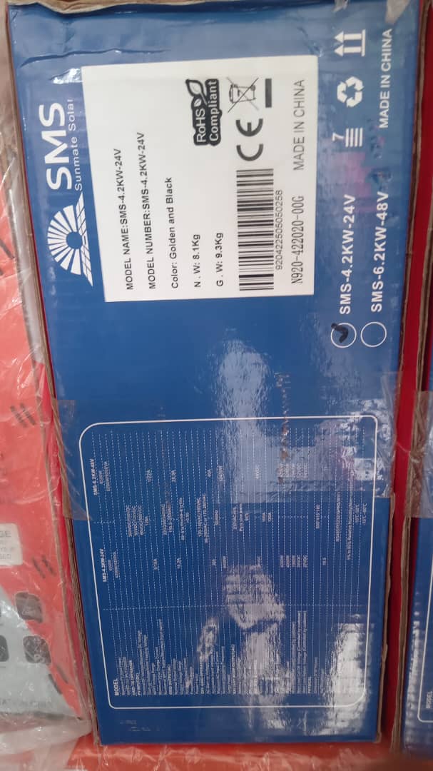 - 1 x Sunmate Solar (SMS) 4.2KW-24V Hybrid Inverter